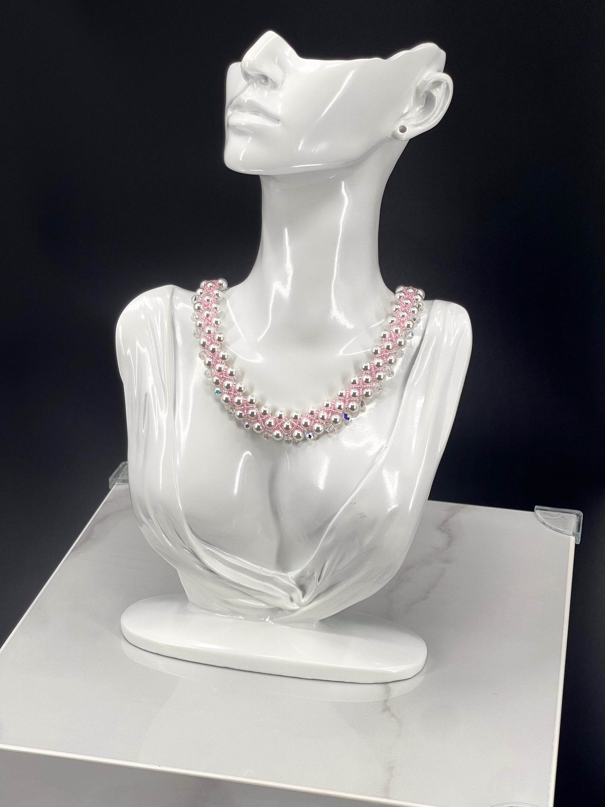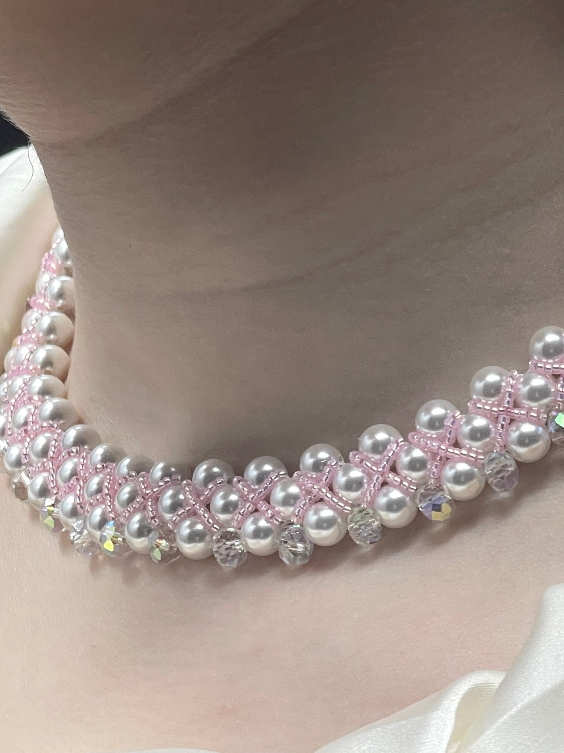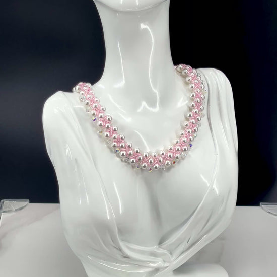 Across The Stars is a one-of-a-kind handmade necklace featuring criss-cross components with pearls overlayed at nearly every intersection, making for a truly brilliant and timeless piece of jewelry